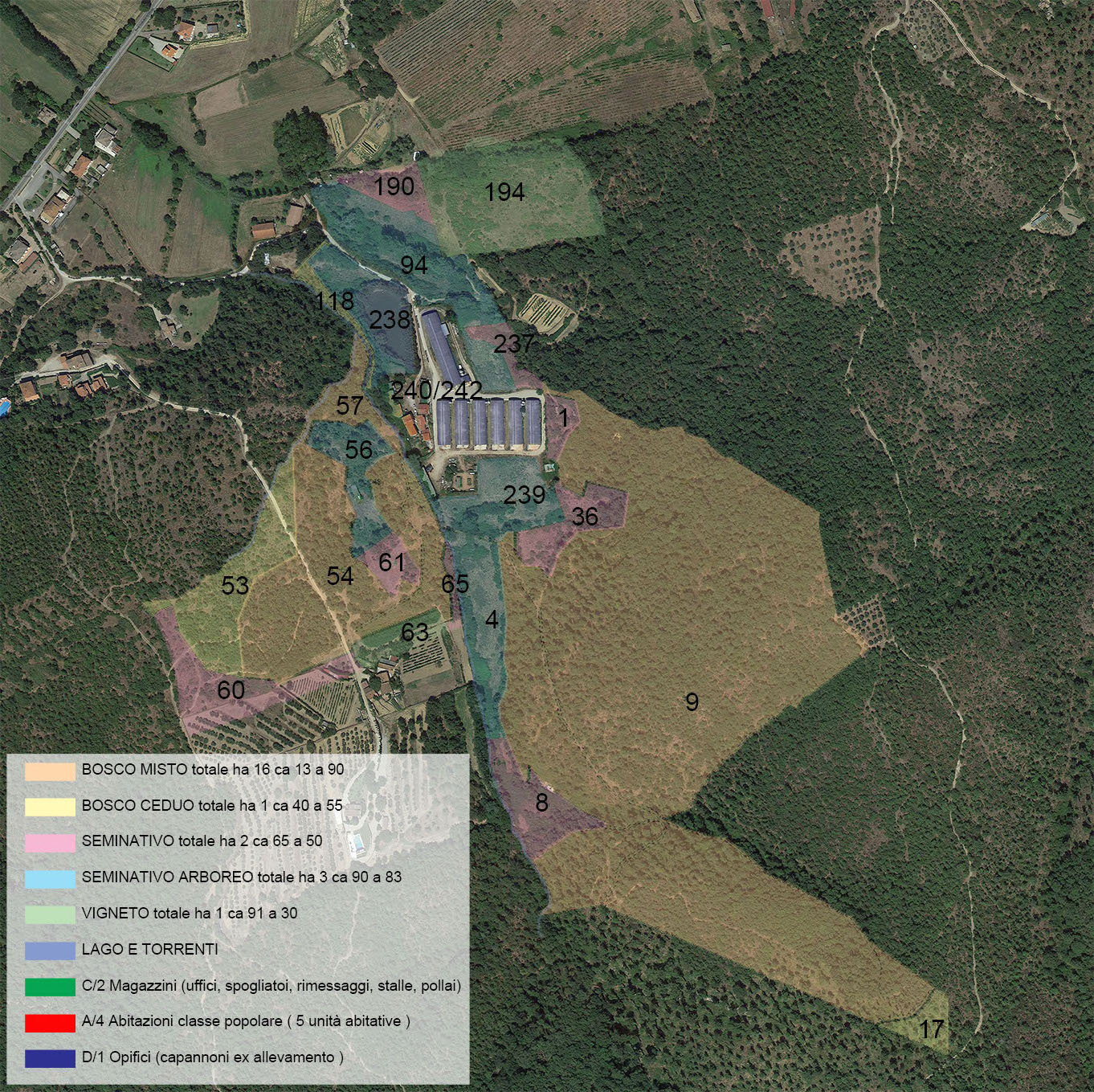 Inoltre realizzeremo una “mappa”, modificando la seguente che è la mappa del Podere e dei terreni annessi, segnando le piante messe e quindi le quote coperte.